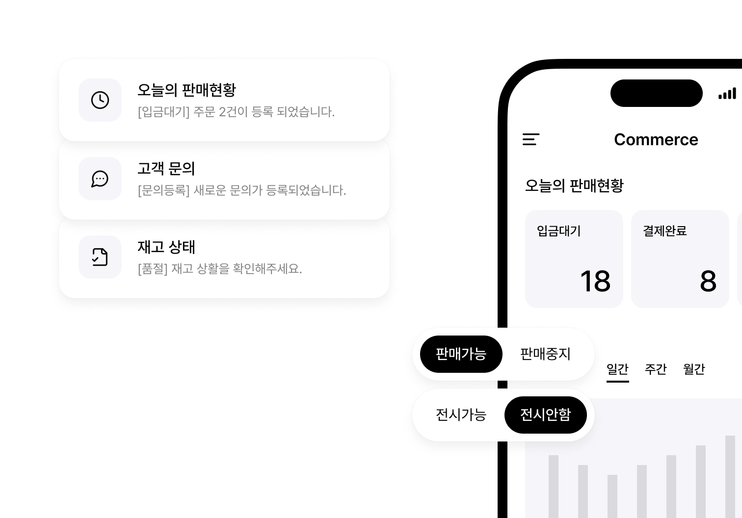 프론트와 백엔드가 분리되어 있어 화면 제약 없이 판매 채널을 확장할 수 있어요.