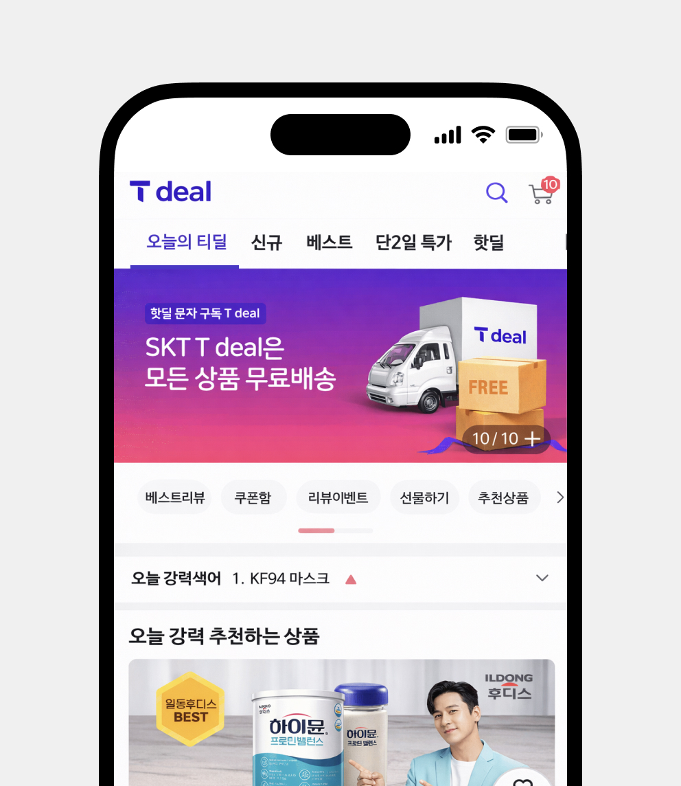 Headless 방식으로 프론트 UI만 개발해 빠르게 런칭했어요. 회원 연동 API로 SKT 회원과 티딜 회원 통합도 수월했어요.